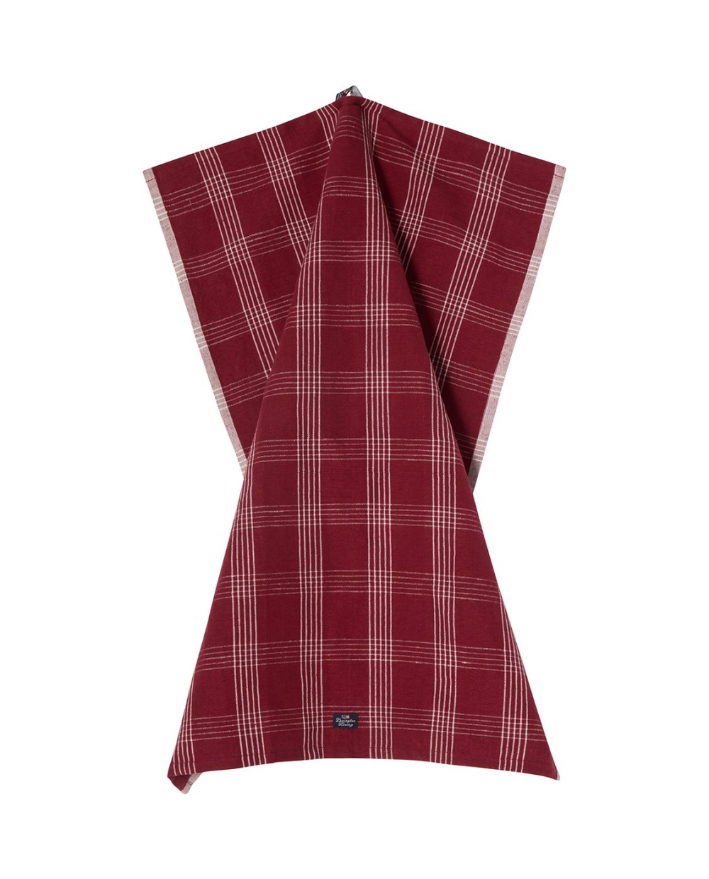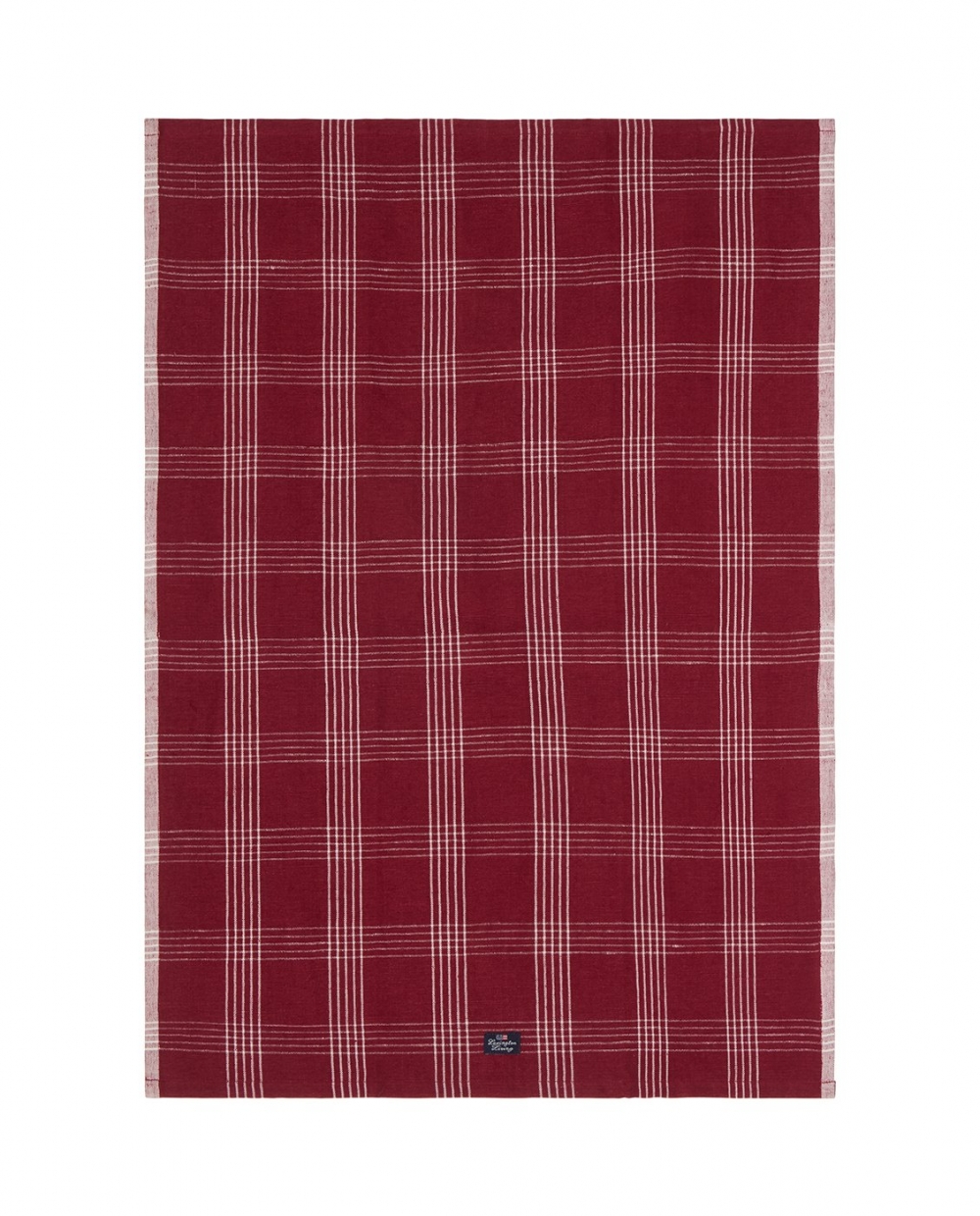 LEXINGTON Rutete rødt/hvitt kjøkkenhåndkle i lin og bomull