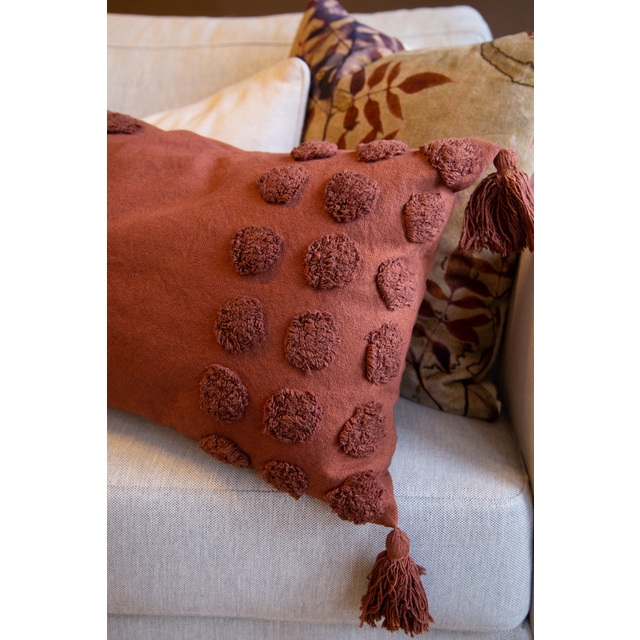 HOLMEN - Pute m/dun og dusker, rustfarget 40x60cm