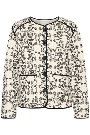 Gizaro er en lett og feminin jakke med et elegant blomsterprint og delikate kontrastkanter som gir et eksklusivt uttrykk.