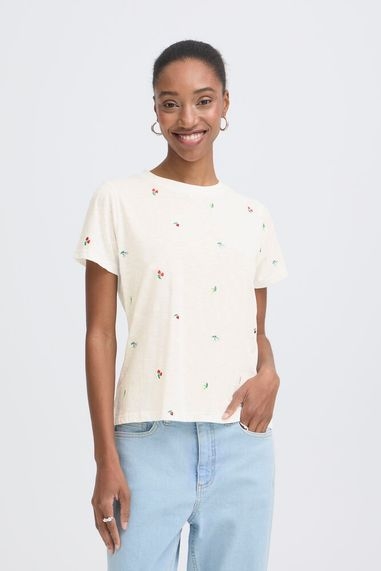 ICHI Olya T-skjorte – Cream med broderte blomster