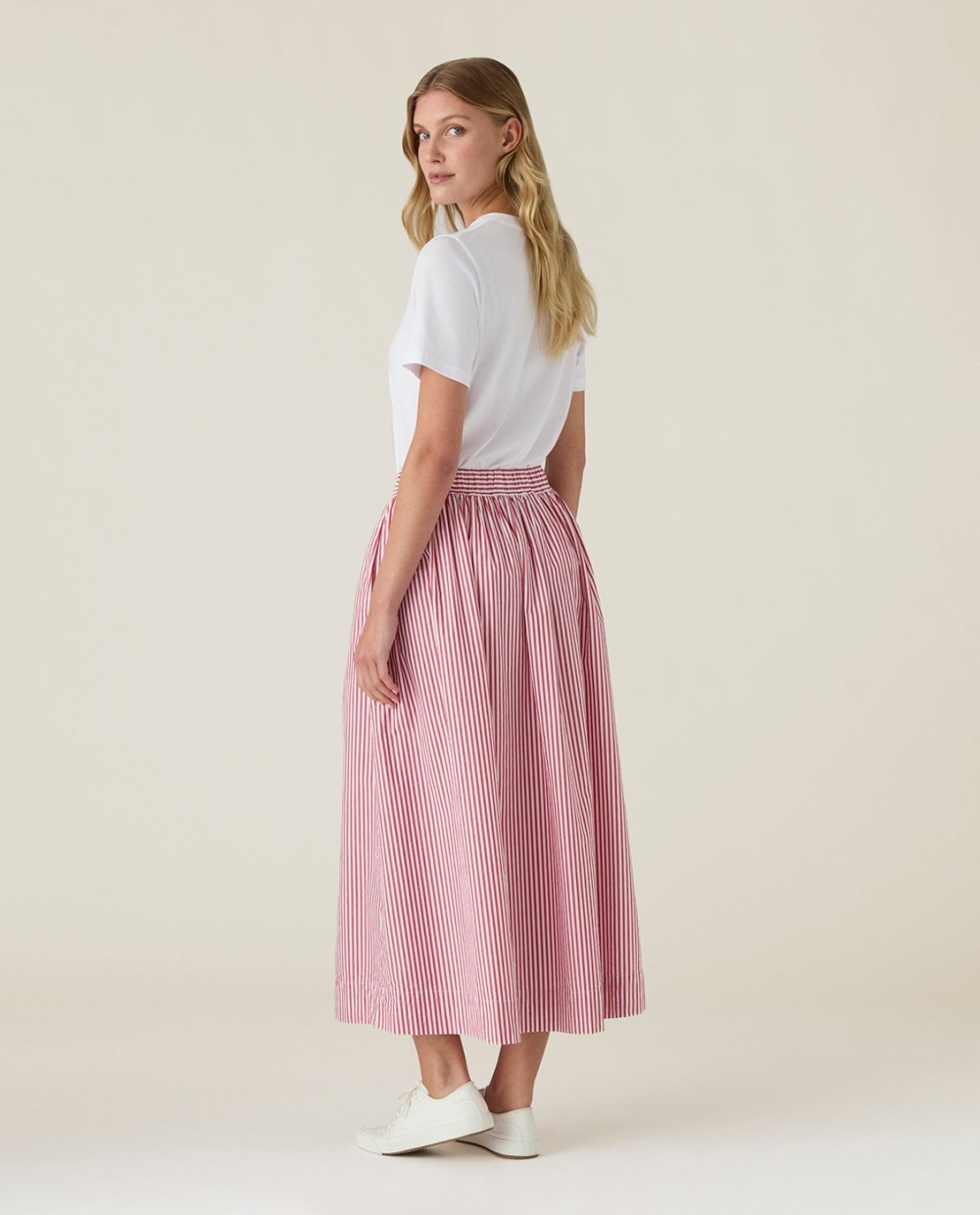 LEXINGTON Stripet midi-skjørt – Rød/Hvit