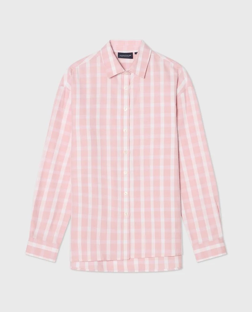 LEXINGTON Rutete flanellskjorte i økologisk bomull – rosa/hvit