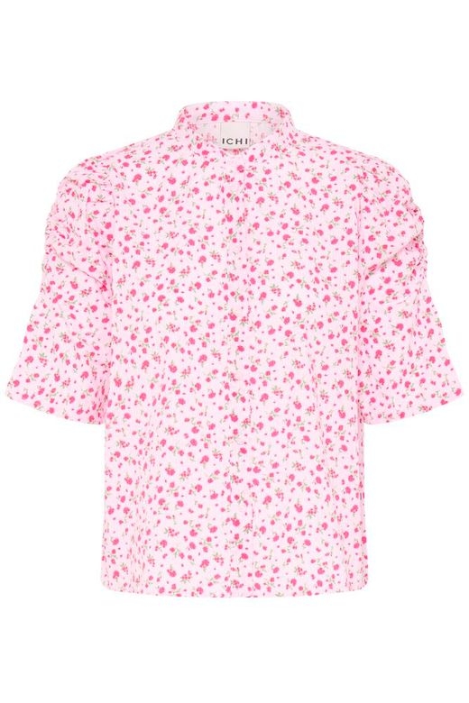 En lett og feminin bluse fra ICHI med et nydelig blomsterprint i rosa toner – perfekt for vår- og sommergarderoben.