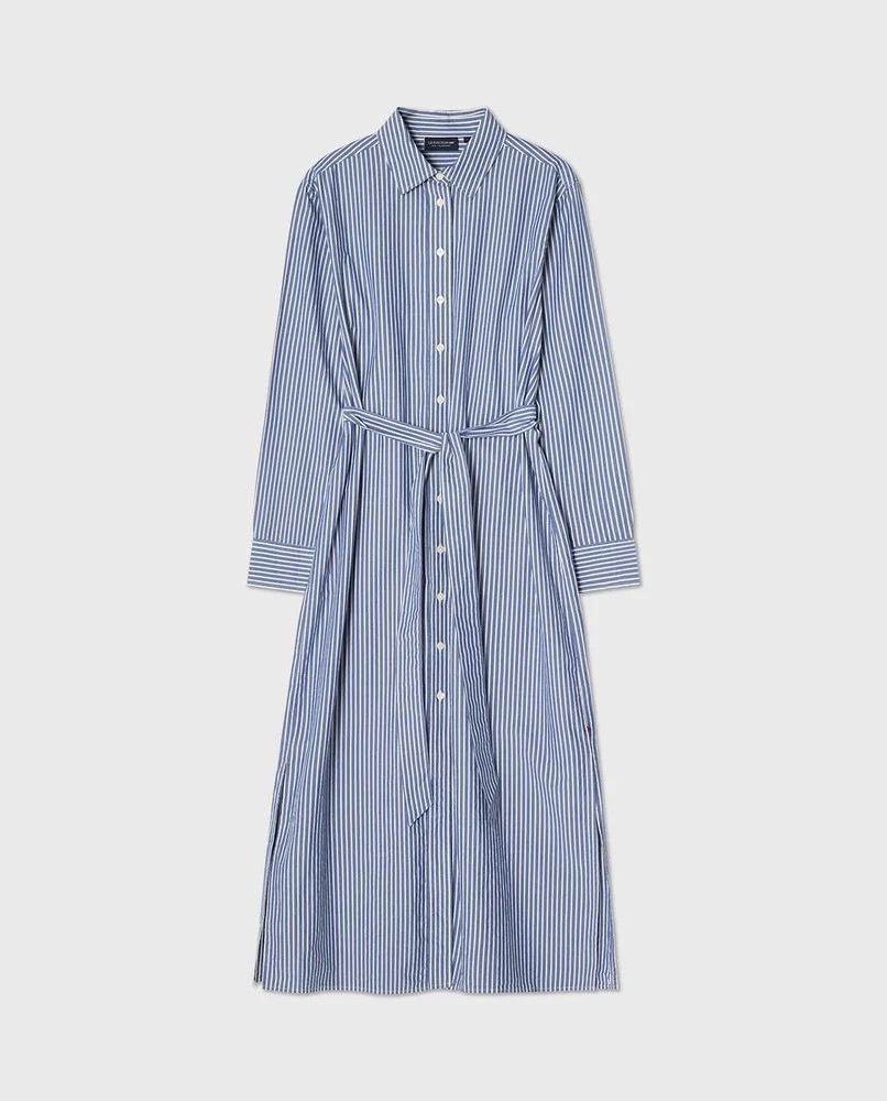 LEXINGTON Stripet skjortekjole i bomull og lyocell blå/hvit