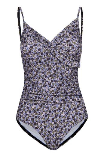 Dette er en flatterende og komfortabel badedrakt med et delikat blomsterprint og elegante detaljer.