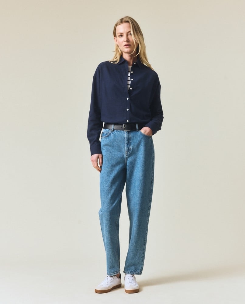 En mørkeblå flanellskjorte som kombinerer tidløs stil, uanstrengt komfort og bærekraftige materialer – Et perfekt valg for både hverdager og rolige helger.