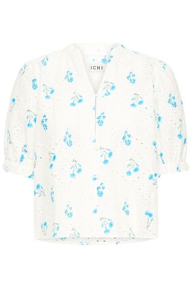ICHI Judite SH Bluse – Cream med blått blomsterprint