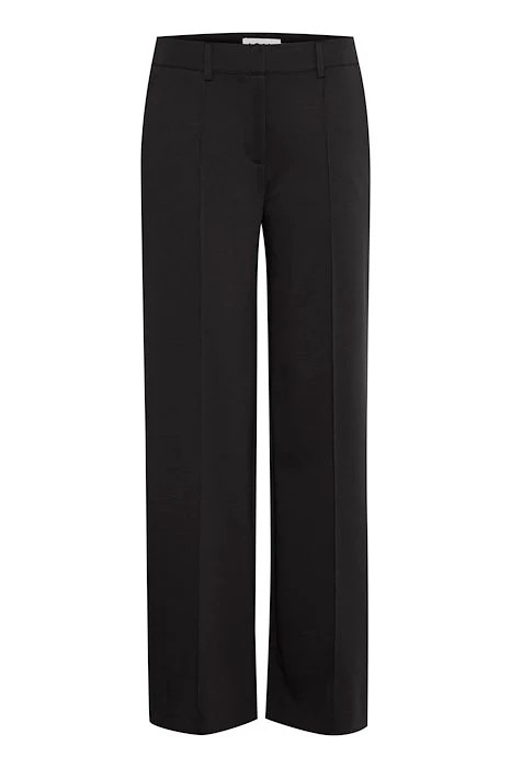 Kate Office-buksen fra ICHI er en stilren, sort bukse med vide ben – perfekt både til hverdagsbruk og en gjennomført jobblook.