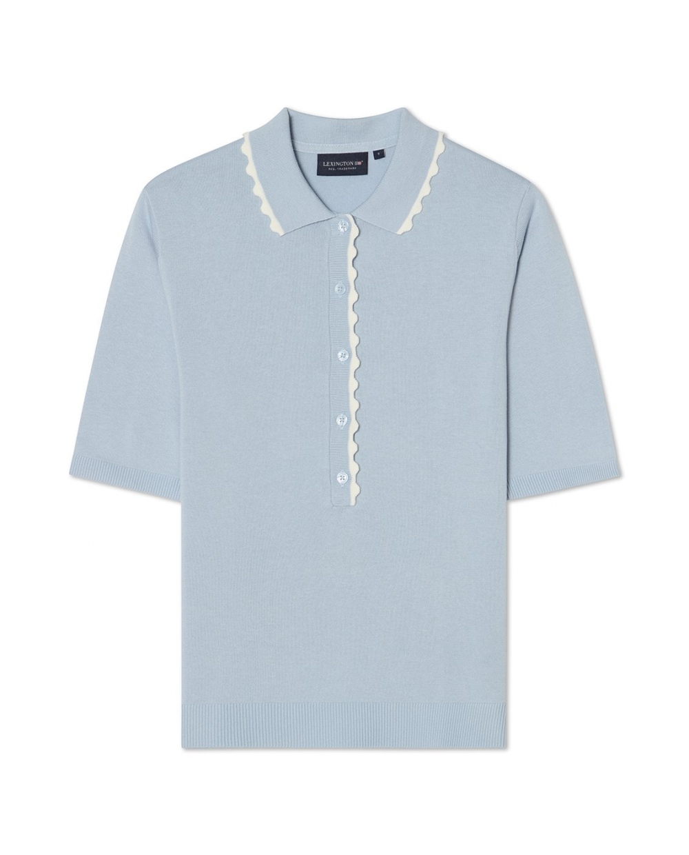 LEXINGTON Strikket poloskjorte med bølgekant – Lys blå