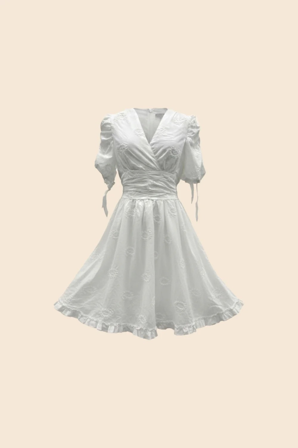 En romantisk og tidløs sommerkjole i hvitt med vakre broderidetaljer. Aurélie kjolen fremhever midjen og gir en feminin silhuett – perfekt til sommerfester, ferier og lyse dager i solen.
