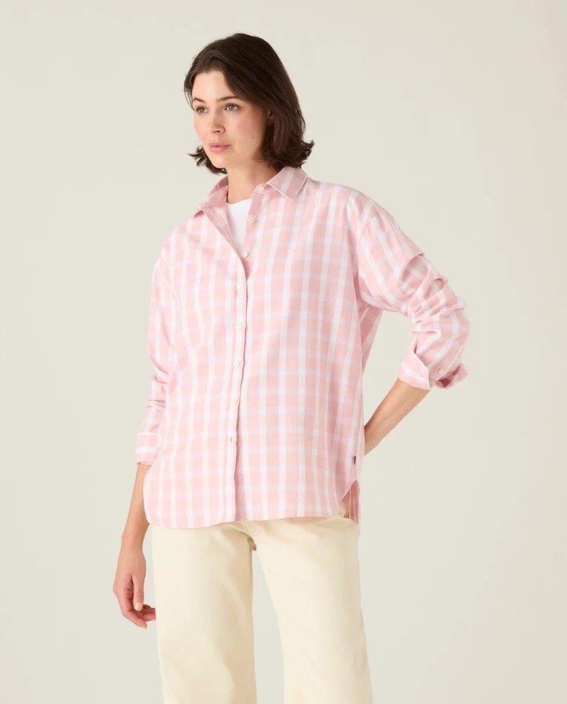Denne flanellskjorten i rosa og hvite ruter kombinerer komfort, kvalitet og tidløs stil. Laget i 100 % økologisk bomull, føles den ekstra myk og behagelig mot huden – perfekt til både hverdag og avslappede anledninger.