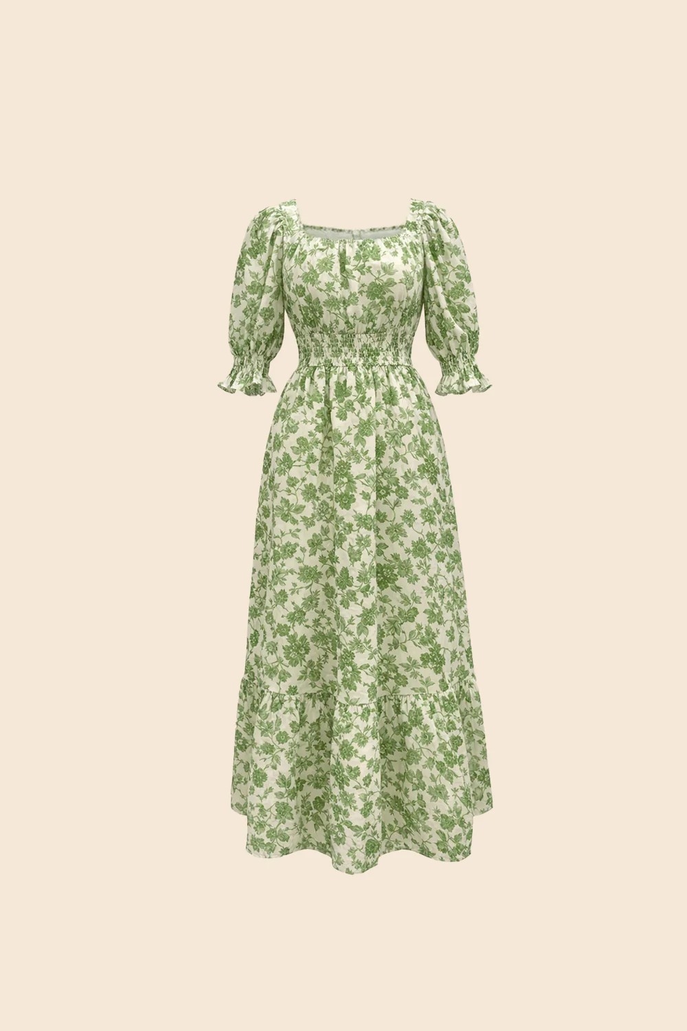 En feminin og romantisk maxikjole i en nydelig grønn tone – perfekt til både sommerfester og rolige dager.