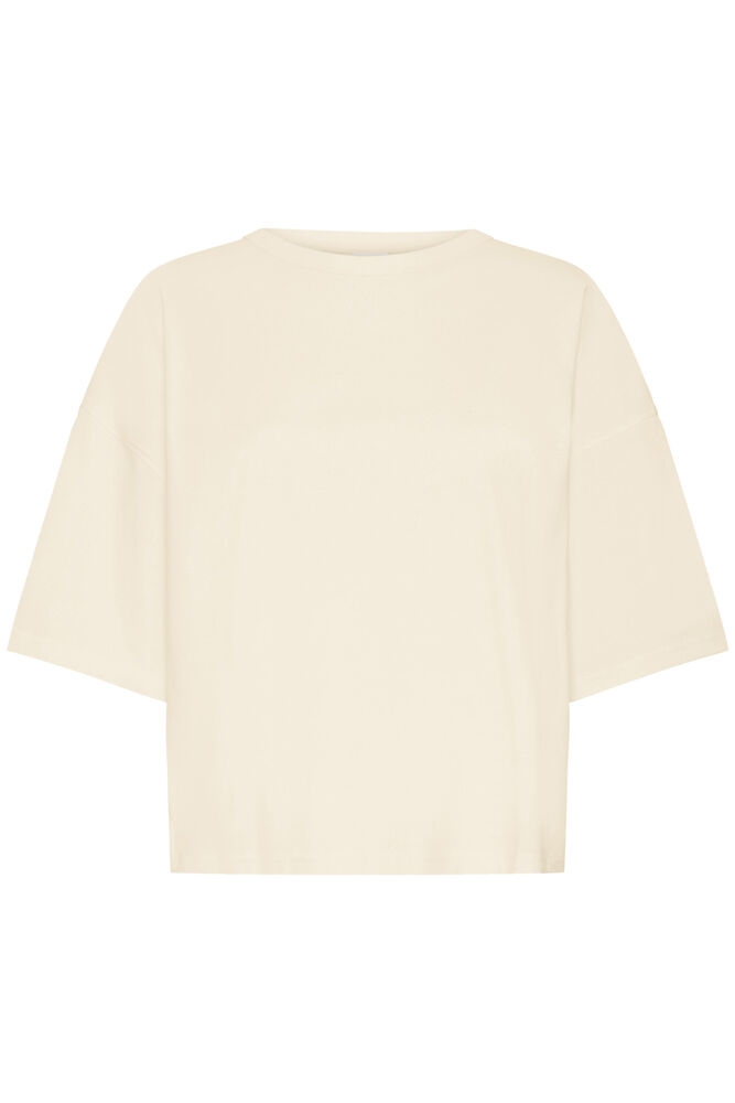 En moderne og avslappet t-skjorte fra ICHI i en myk beige toner – perfekt for en stilren og komfortabel hverdagslook.