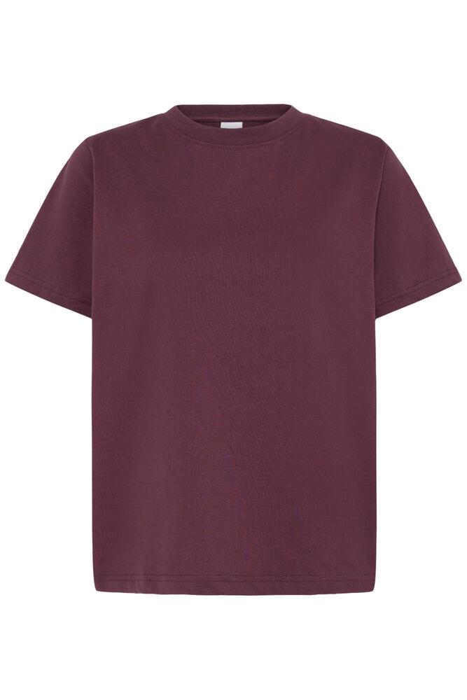 En myk og avslappet t-skjorte fra ICHI i en dyp vinrød tone – perfekt til en komfortabel og stilren hverdagslook.