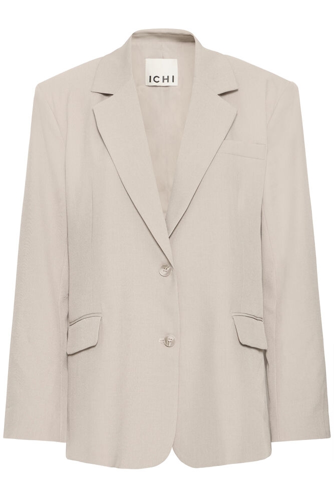 En stilren og moderne blazer fra ICHI i en delikat grå melert tone – perfekt til både hverdags og mer pyntede anledninger.