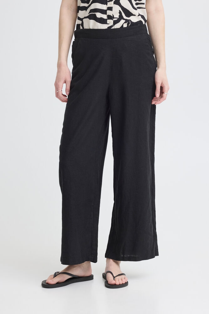 En lett og stilren linbukse fra ICHI i klassisk sort – perfekt til en avslappet, men elegant sommergarderobe.