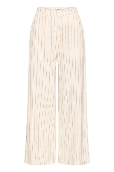 En lett og stilren linbukse fra ICHI med delikate striper – perfekt for en avslappet og sommerlig garderobe.