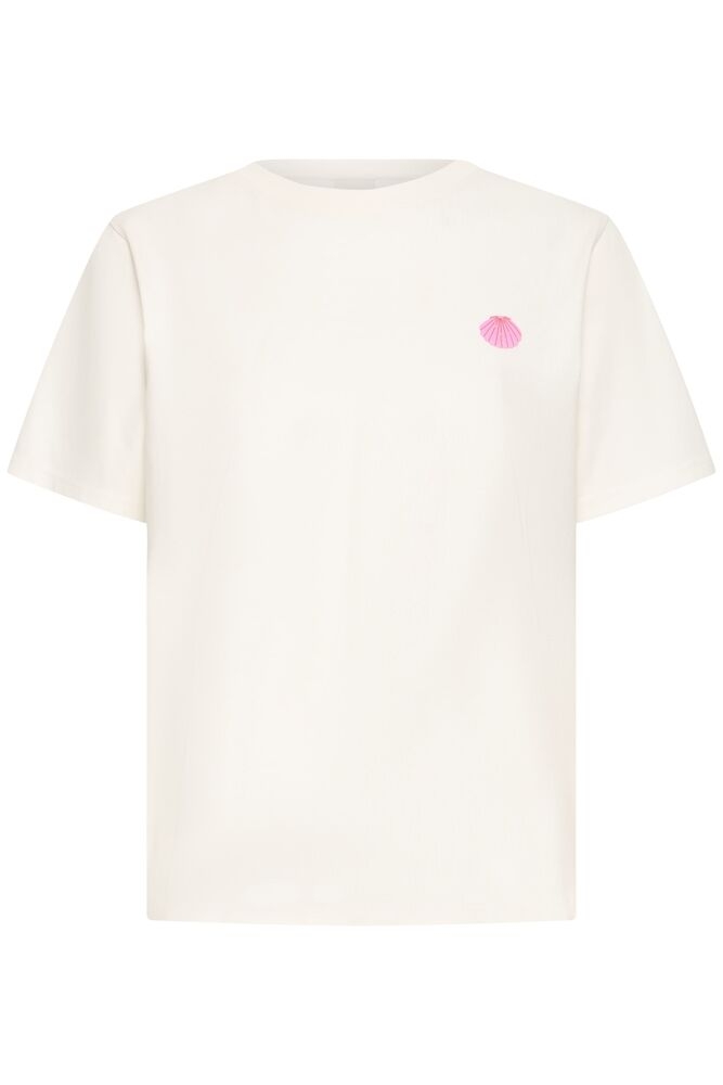 ICHI Olya T-skjorte – Cream med broderte blomster