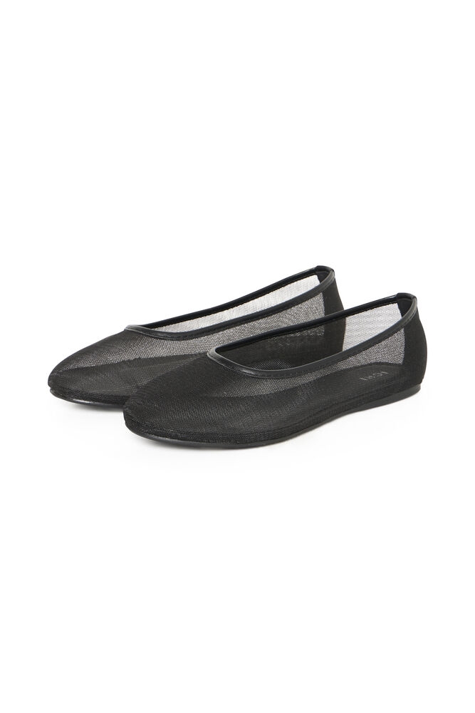 Moderne og feminine ballerinasko i transparent mesh – en elegant detalj til både hverdags- og festantrekk.