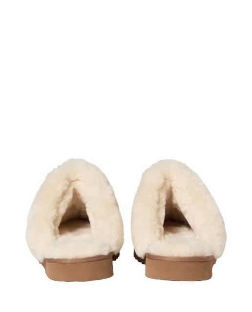 Overdelen i ekte semsket kuskinn gir et eksklusivt preg, mens det fluffy kunstpelsfôret omslutter føttene i varme og komfort. Dekorative sømmer og en subtil logoetikett på siden tilfører en elegant detalj.
