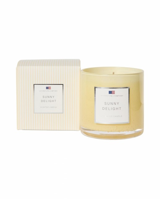 Lyset har bomullsveke og en nøye sammensatt formel som gir opptil 65–70 timers brennetid. Det leveres i en dekorativ gaveeske med gule og hvite striper, perfekt tilpasset Spring 26-kolleksjonen – like fin å gi bort som å unne seg selv.