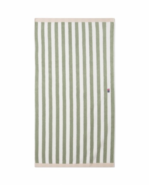 LEXINGTON Blokkstripet håndkle, vintage grønn/hvit/moonbeam, 100x150cm