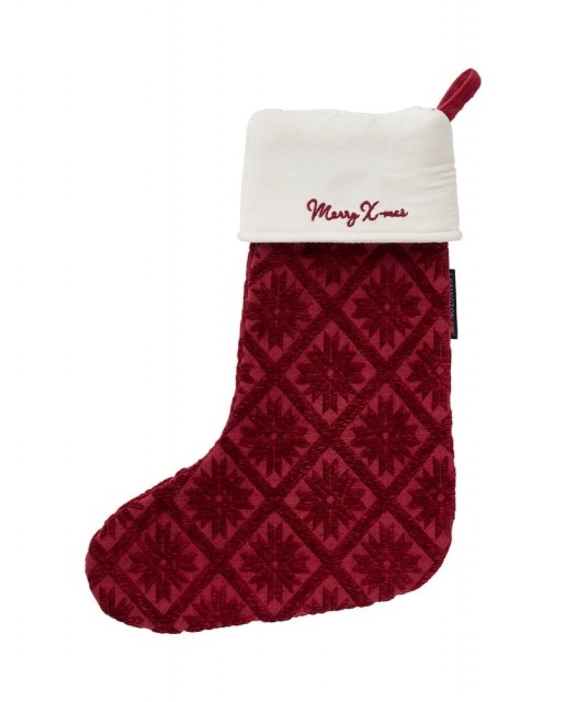 Denne vakkert utformede julesokken bringer sesongens varme og tradisjon rett inn i hjemmet. Laget av en myk og luksuriøs blanding av økologisk bomull og viskose, har den et eksklusivt jacquard-vevd chenillemønster som gir dybde, tekstur og visuell eleganse.