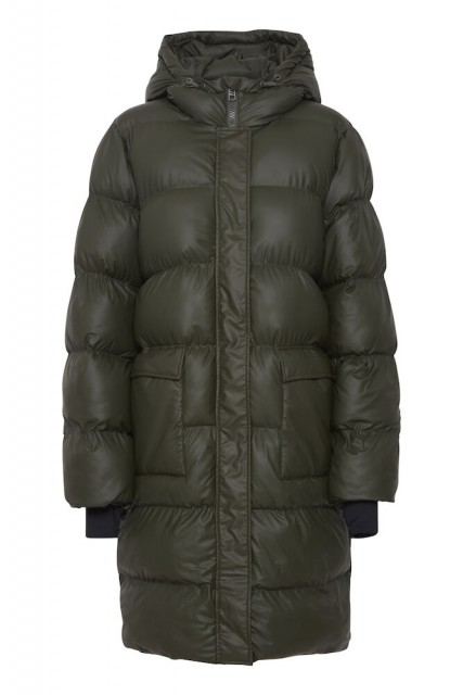 Jakken har en lengre passform med myk, isolerende padding som holder deg varm gjennom hele sesongen. Den har hette, glidelås og trykknapper i front, samt romslige lommer som både er praktiske og gir et avslappet uttrykk. De brede, quiltede panelene gir jakken et moderne og trendy preg.