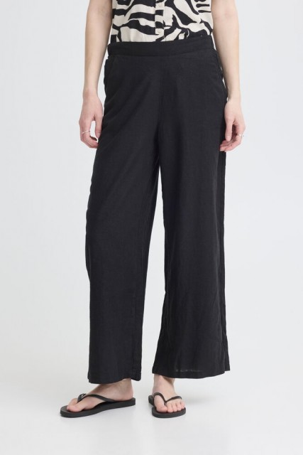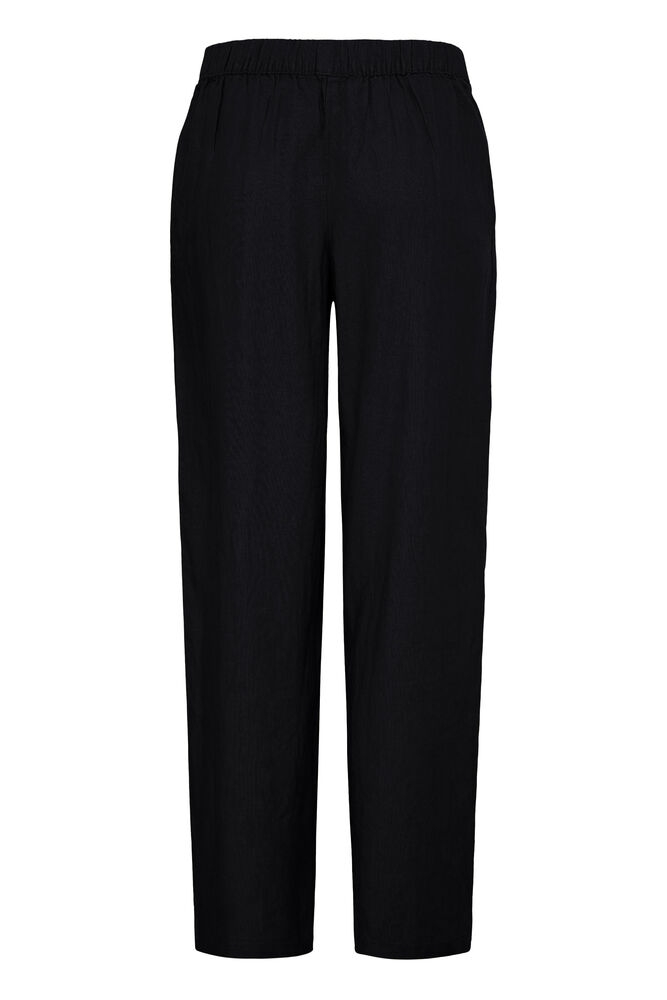 Linno er en komfortabel og tidløs bukse med et avslappet og moderne uttrykk. Den klassiske sorte fargen gjør den enkel å style til både hverdags og mer pyntede anledninger.