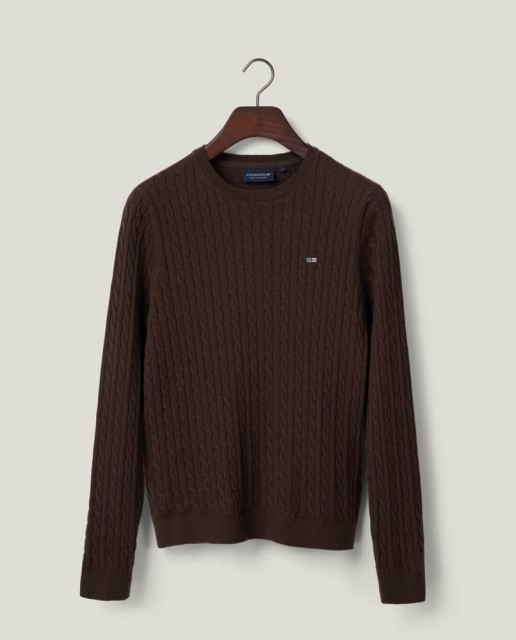 Raglanermene gir et avslappet snitt og gjør den behagelig å bevege seg i, mens det klassiske kabelstrikkmønsteret tilfører struktur og karakter.
