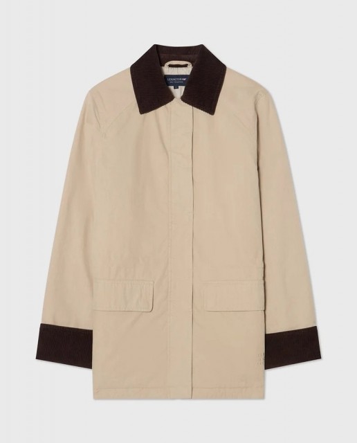 Jakken har en casual passform og er designet med fine detaljer som fløyelskrage og mansjetter i kontrastfarge, som gir et hint av heritage og eksklusivitet. Den lukkes med glidelås og skjulte trykknapper for et rent uttrykk, og har praktiske lommer i front samt en innerlomme.