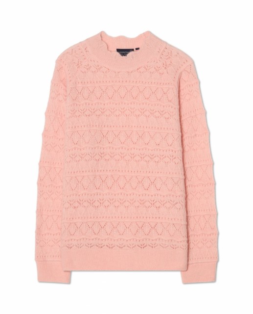 Den delikate blondestrikken gir genseren et lett og raffinert preg, mens den myke kvaliteten gjør den behagelig å bruke hele dagen. Den lyse rosatonen tilfører garderoben et friskt og sofistikert løft.