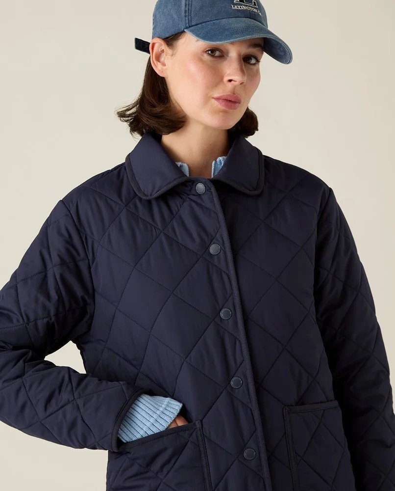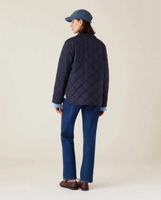 Den avslappede passformen med droppede skuldre gir et moderne uttrykk, samtidig som de quiltede detaljene tilfører struktur og en lun følelse. Jakken er lett, men varm – perfekt til lag-på-lag gjennom sesongen.