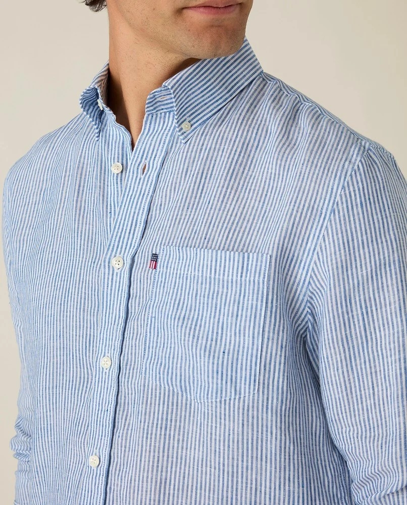 Med sin avslappede passform og klassiske button down-krage får du en look som er både uanstrengt og gjennomført. De fine detaljene gjør hele forskjellen – som brystlommen med Lexington-etikett, buede avslutninger og delikate knapper i resirkulert materiale.