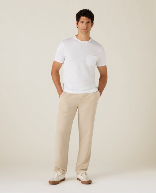 Den er laget i myk og behagelig bomull som gir god komfort hele dagen, og har en rett, avslappet passform som fungerer like godt alene som under skjorte eller jakke. Den diskrete brystlommen gir et rent, gjennomført uttrykk med det lille ekstra.