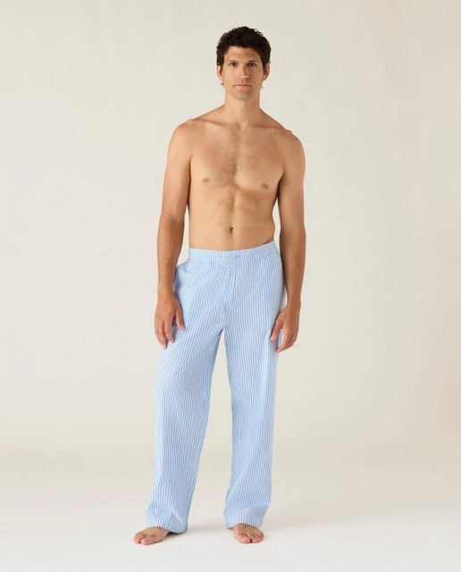Buksen har normal midje med elastisk linning og snørebånd på innsiden som gir en fleksibel og tilpasset passform. Den myke poplinkvaliteten gjør den lett og pustende mot huden, noe som gir en sval og behagelig følelse gjennom natten. Praktiske sidelommer og en falsk glidelås gir et klassisk og gjennomført uttrykk.