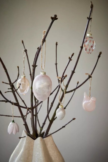 Med en liten gullmetallhette og enkel snor er den ideell til å henge på grener, i vinduer eller som påskedekorasjon. Glassdekorasjonen fanger lyset vakkert og tilfører både eleganse og sjarm. Tidløs i designet, kan den brukes år etter år og kombineres lett med andre dekorasjoner for en festlig atmosfære.
