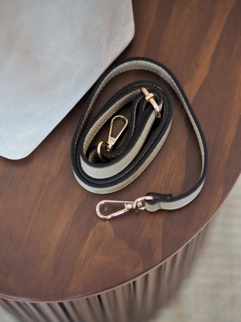 En sofistikert og tidløs bøtteveske som kombinerer mykt semsket skinn med glatt skinn for et eksklusivt uttrykk. Det dekorative knutebeltet gir vesken et feminint og stilrent preg – perfekt både til hverdags og når antrekket skal løftes litt ekstra.