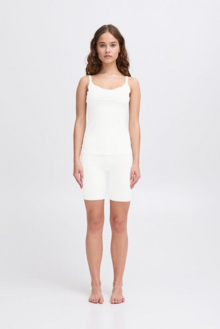 Denne singleten har høy stretch som gir en tett og behagelig passform som former seg fint etter kroppen. Den rene, hvite fargen og det tidløse designet gjør singleten enkel å style – like fin alene på varme dager som under skjorte, kjole eller blazer.
