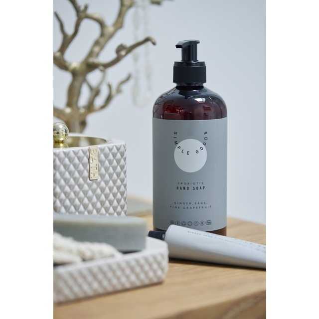 Simple Goods Håndsåpe er laget av naturlige og økologiske ingredienser, og er beriket med naturens gode bakterier - probiotika. Den vil etterlate hendene dine rene, velduftende og fuktighetsgivende.