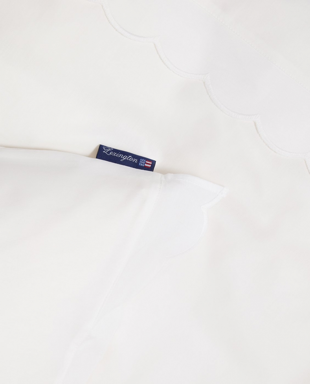 LEXINGTON Bomullspoplin scallop wing sengesett, 200x220cm, Hvit