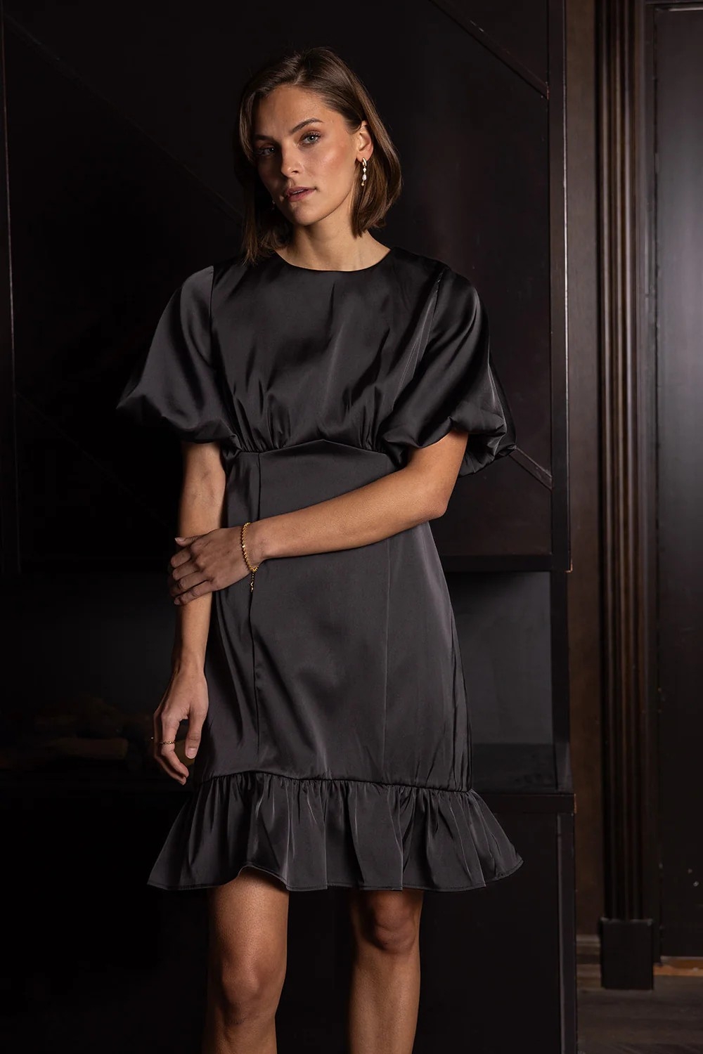 Sunniva Dress er en elegant og sofistikert kjole i glansfull sateng.