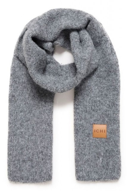Den melerte grå tonen gjør skjerfet lett å kombinere med alt i garderoben – fra kåper og jakker til hverdagsgensere. Et lite, moderne ICHI-skinnpatch gir et diskret og eksklusivt uttrykk.