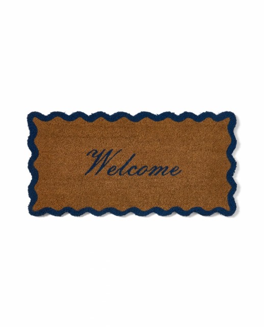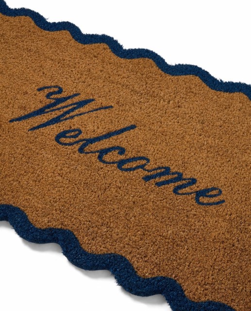 Den bølgete kanten og den dype blå “Welcome”-teksten gir et mykt, kystinspirert uttrykk som gjør inngangspartiet mer innbydende. Enten den ligger utenfor ytterdøren, på hytta eller i gangen, skaper den en hyggelig velkomst – hver eneste dag.