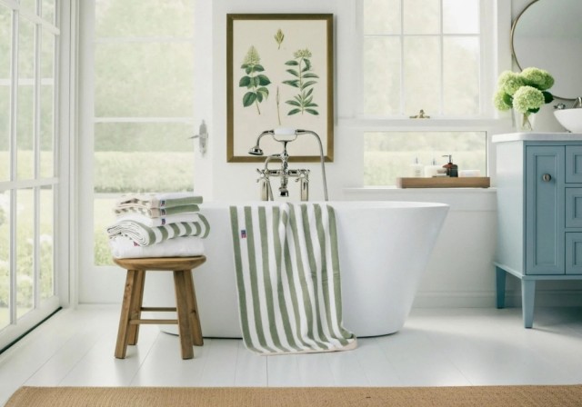 LEXINGTON Blokkstripet håndkle, vintage grønn/hvit/moonbeam, 50x70cm