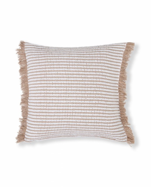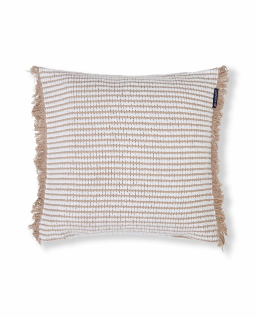 Dette stripete putetrekket fra Lexington er en enkel måte å tilføre både tekstur og liv til interiøret. De klassiske beige og hvite stripene gir et tidløst uttrykk, mens frynsekanten rundt hele puten tilfører en myk og uformell finish.