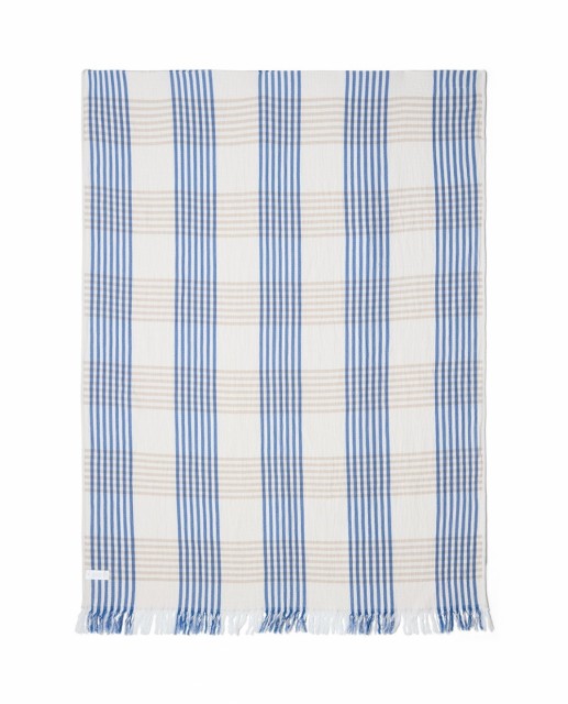 Det gjennomtenkte designet gir pleddet et ekstra særpreg: klassiske striper på forsiden og et subtilt rutemønster på baksiden skaper dybde og variasjon. De myke frynsene i kantene gir et avslappet og uformelt uttrykk som passer perfekt inn i både moderne og mer klassiske hjem.