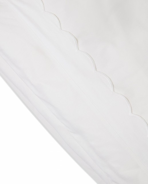 De dekorative scallop wing-detaljene med kantsøm gir et sofistikert og gjennomført uttrykk både på putevar og dynetrekk. Dynetrekket avsluttes med Lexingtons karakteristiske logo-gummiknapper nederst, som gir det lille ekstra.