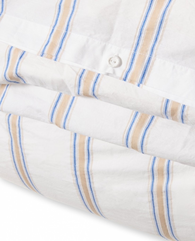 Sengesett er et stilrent og komfortabelt sett som gir soverommet et lyst og gjennomført uttrykk. De klassiske stripene i blått og hvitt skaper en rolig og tidløs følelse som passer inn i de fleste hjem.