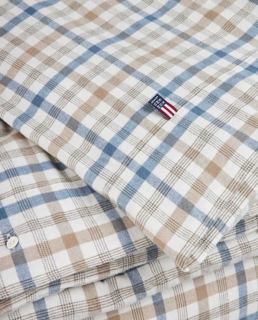 Pakk deg inn i ren hygge med vårt dette sengesettet – der myk komfort møter tidløs eleganse. Den lune fargekombinasjonen av misty blue, beige og hvitt gir soverommet et rolig, innbydende preg året rundt. Veid av garndyede melangegarn i et klassisk rutemønster, får du et uttrykk som både er stilfullt og koselig.